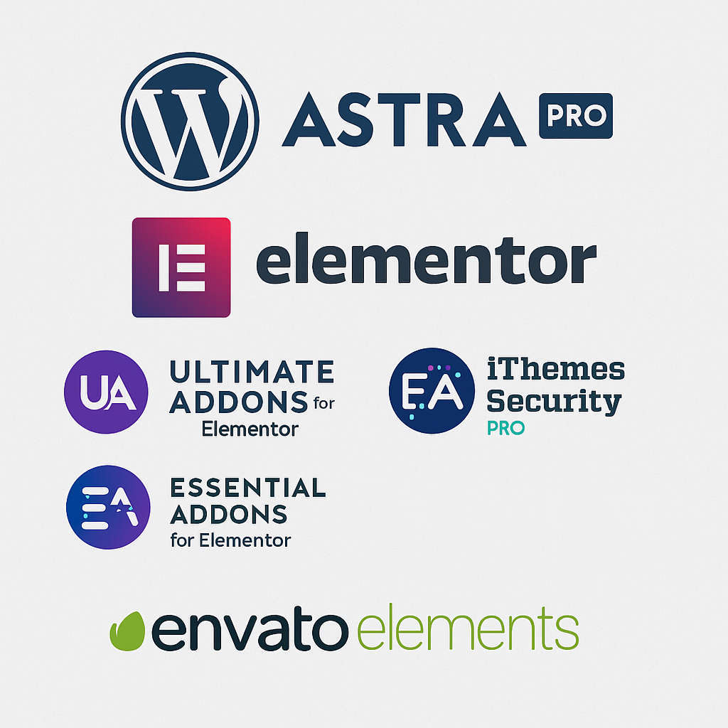 Our development stack combines Astra Pro and Elementor Pro for flexible, high-performance design. Clients benefit from our suite of premium plugins, including Ultimate Addons, Essential Addons, iThemes Security Pro, etc. Additionally, we provide access to a vast library of stock photos via Envato Elements, ensuring your site is both functional and visually compelling.